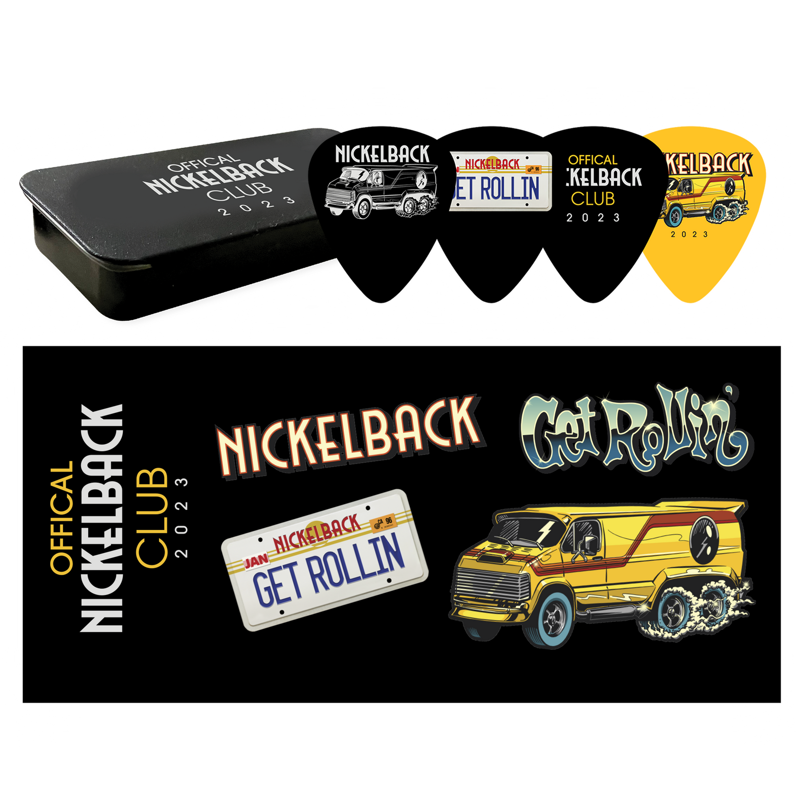 Nickelback Club Pick Tin Set and Sticker Sheet Bundle